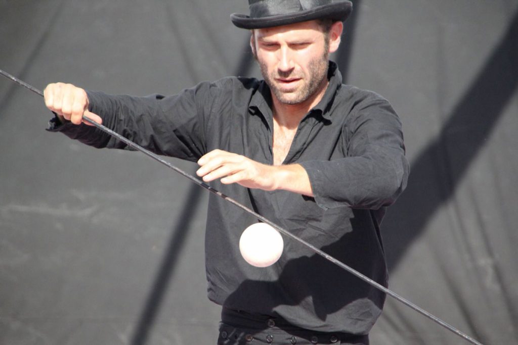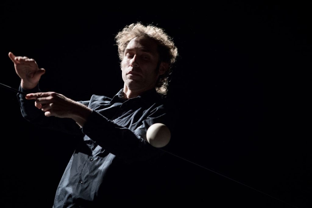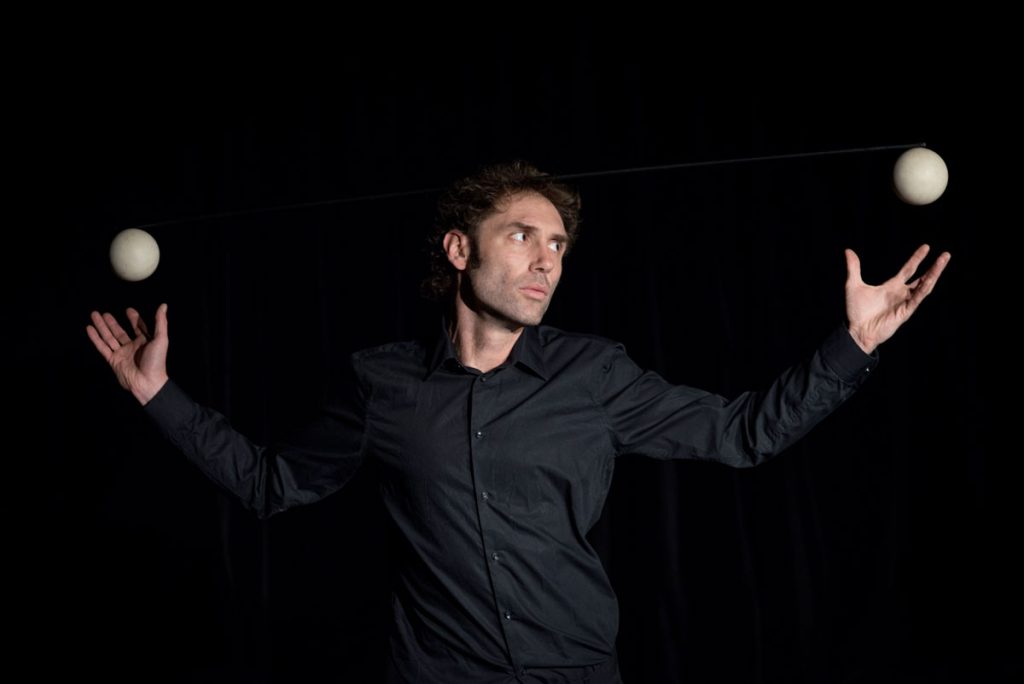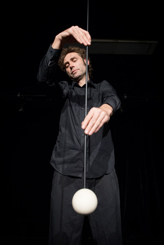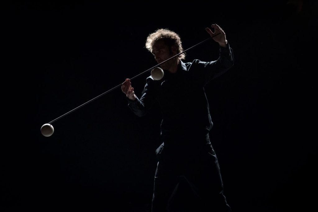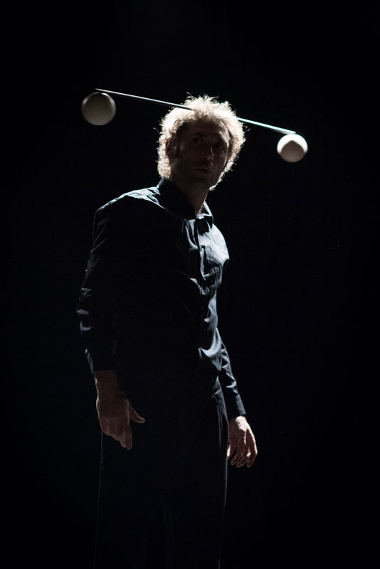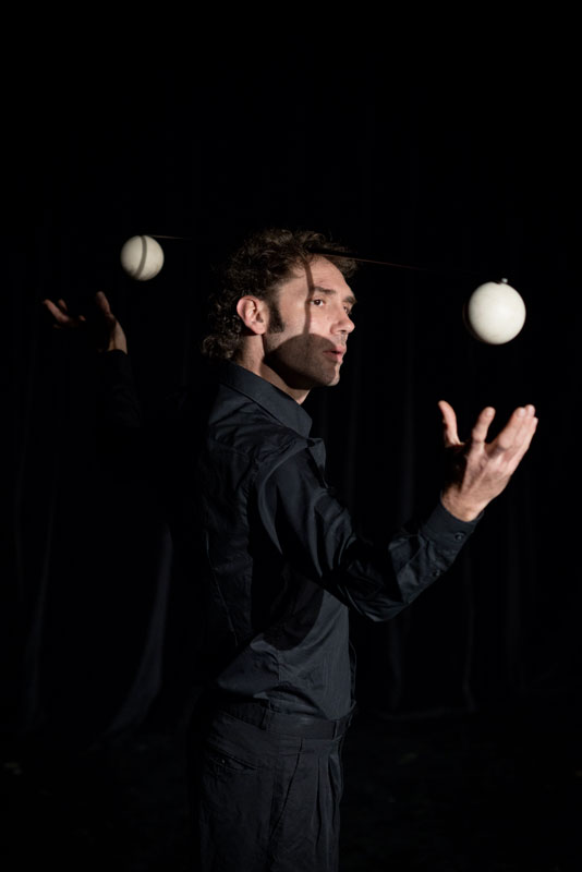 Alternance d’immobilité du corps pour accentuer les trajectoires des objets, ici une approche différente du jonglage est proposée : un équilibre subtil entre danse, jonglerie et poésie.